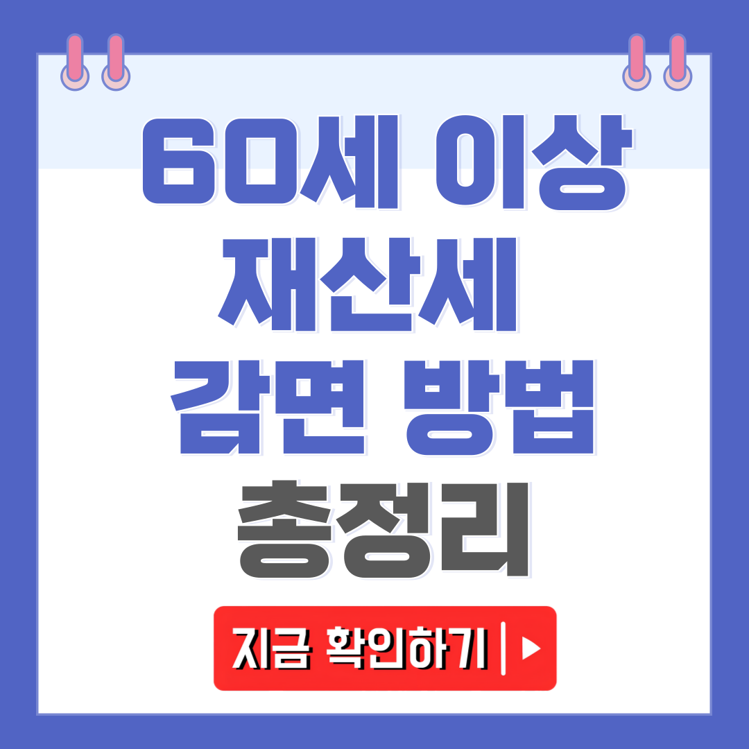 「지방세특례제한법」에 근거한 고령자 재산세 감면은 놓치기엔 너무 아까운 혜택입니다.