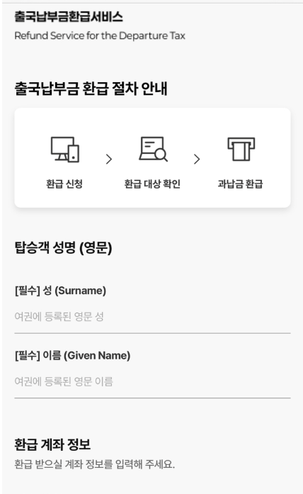 복잡한 서류 제출 없이, 공식 사이트에서 여권 정보 + 계좌 입력만 하면 끝입니다.
